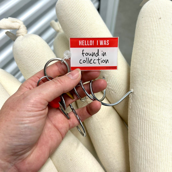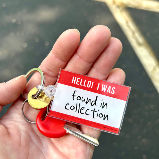 This item has a metal ring with a plastic "Found in Collection" image and fastener.
