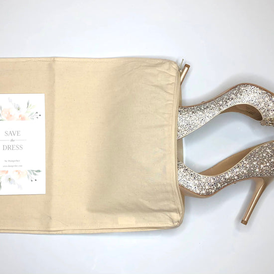 This 12 x 18 accessory bag with zipper is made from high-quality natural cotton / muslin and is perfect for storing shoes, bridal veil, small clothing items, treasured heirlooms, and more.
