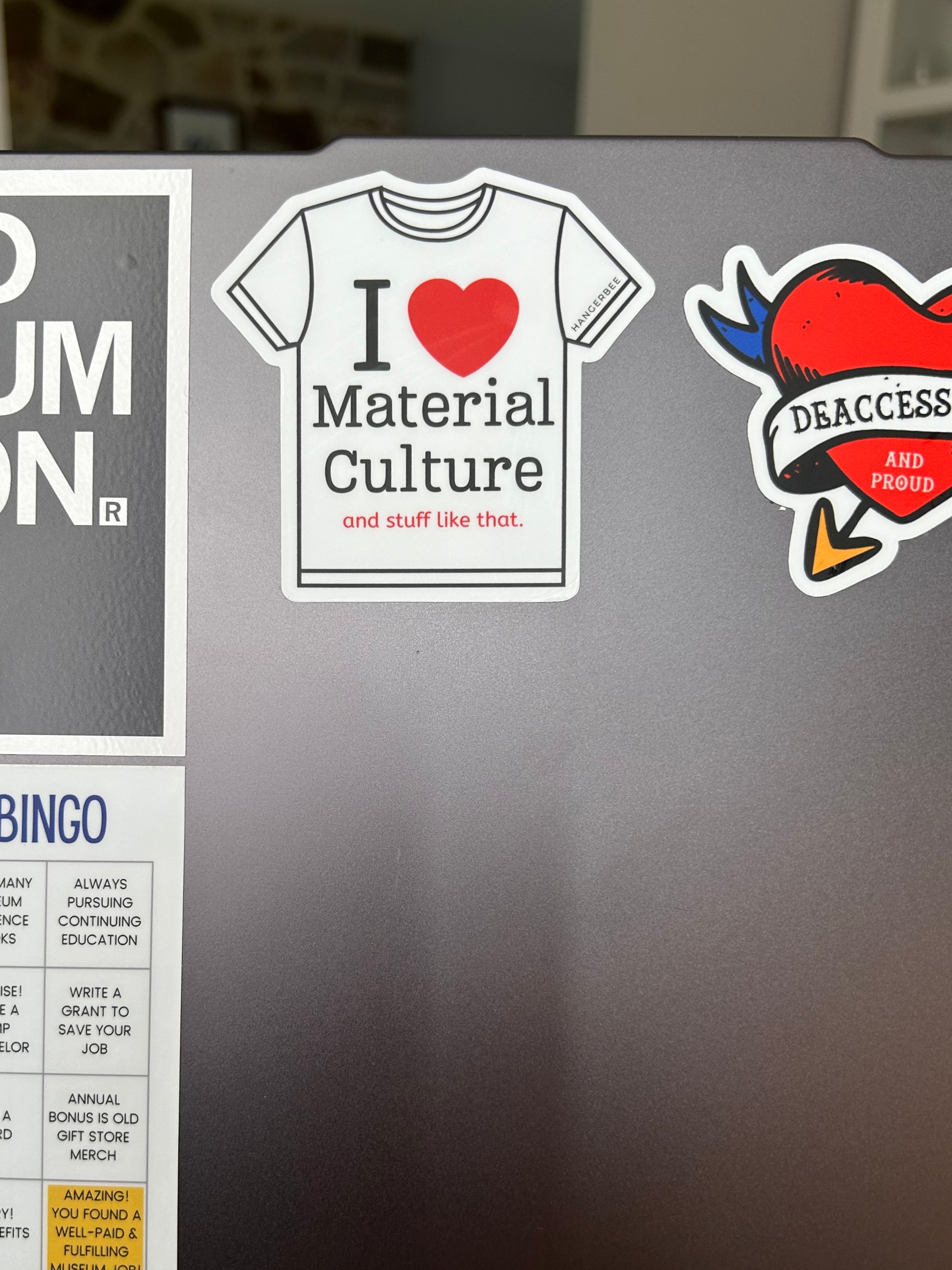 Whether you're a material culture scholar, a museum collections professional, a personal collector, or just someone with "too much stuff," this (approx. 3") sticker is for you.