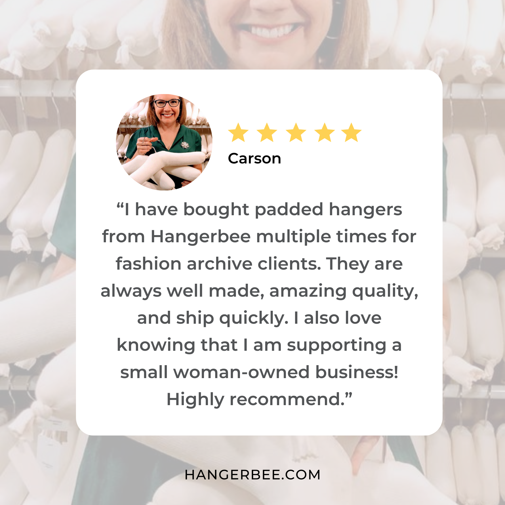 Each Hangerbee hanger is padded by hand. Therefore, no hanger will be exactly alike and there may be small imperfections. Hangerbee strives to create a stable, affordable and streamlined product that you can trust.