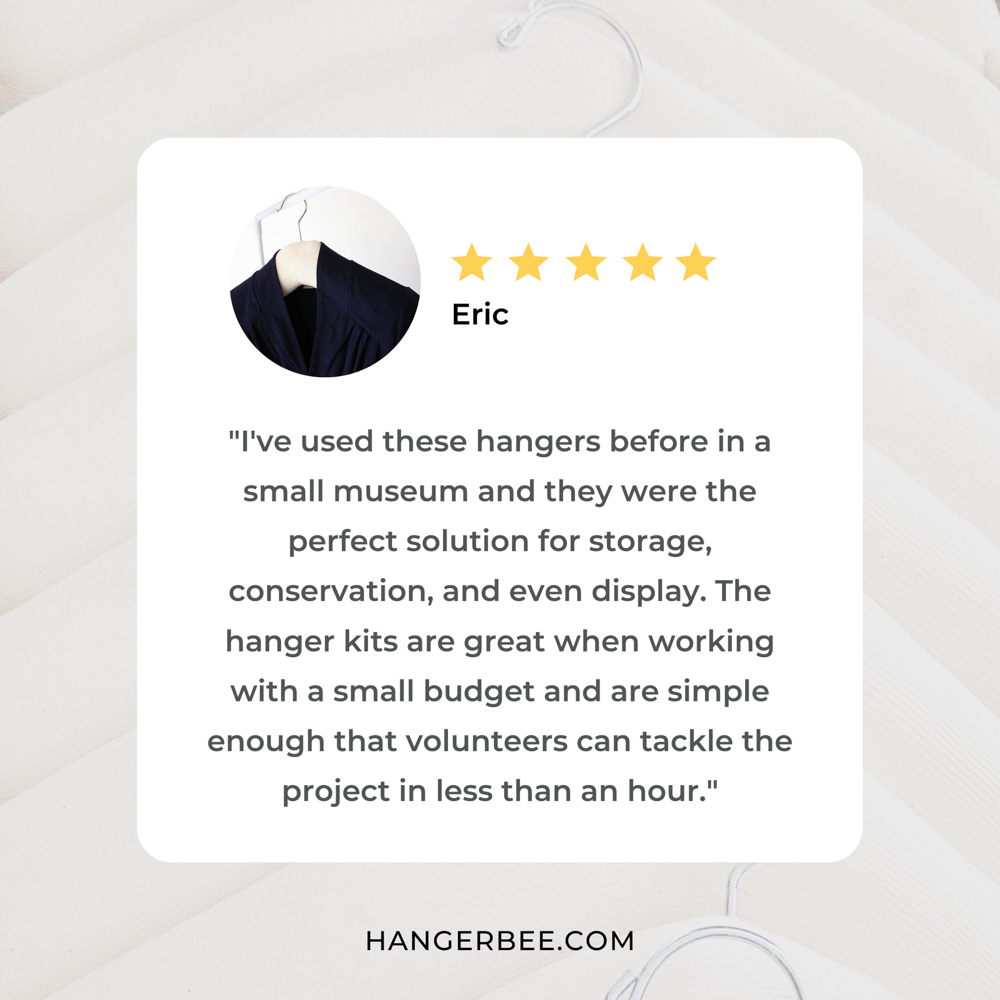 Hangerbee hangers are museum-quality padded hangers for the long-term preservation of historic garments.