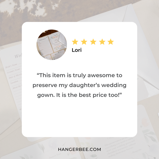 Hangerbee’s wedding dress preservation kit has arrived! In as little as five minutes* you can preserve and protect your wedding gown the way museum professionals do.